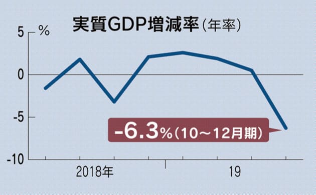 10~12月期GDP、年率6.3%減 5四半期ぶりマイナス - 日本経済新聞