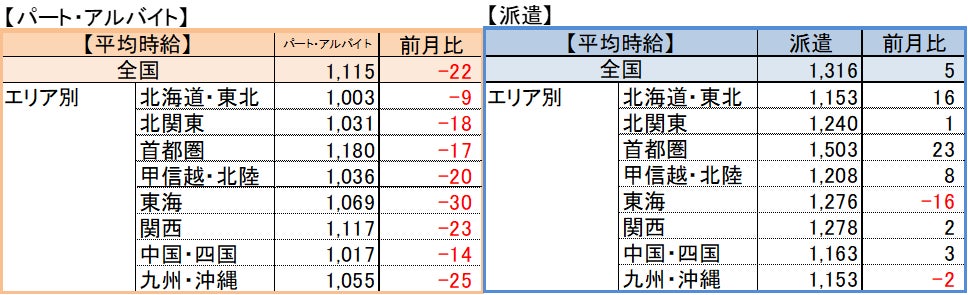 【パート・アルバイト】全国・全職種平均時給は1,115円。前月比-22円。前年同月比+54円。