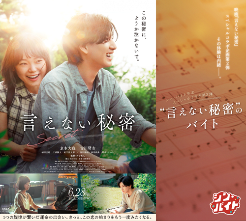 6月29日(土)実施の公開記念舞台挨拶にて「その体験は、内緒—。“言えない秘密”のバイト」と題し、イベント運営のお手伝いが体験できるアルバイトを募集します。本企画を通じて、映画や芸能関係の仕事に興味を持つ方々の夢を実現する機会を提供します。