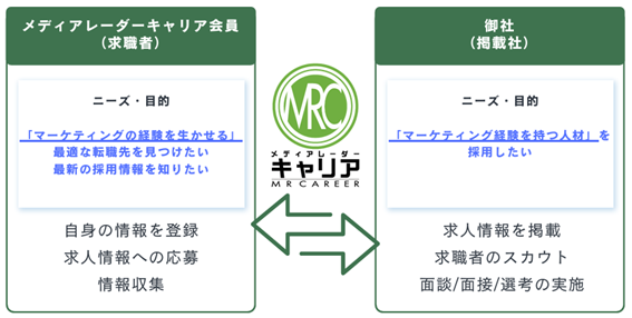 上記の背景から、メディアレーダーのビジョンである「広告業界のインフラになる」の実現に向けて、人材獲得に力を入れる求人企業と、マーケティング領域の即戦力人材である求職者をマッチングするために、「メディアレーダーキャリア」の開発に至りました。