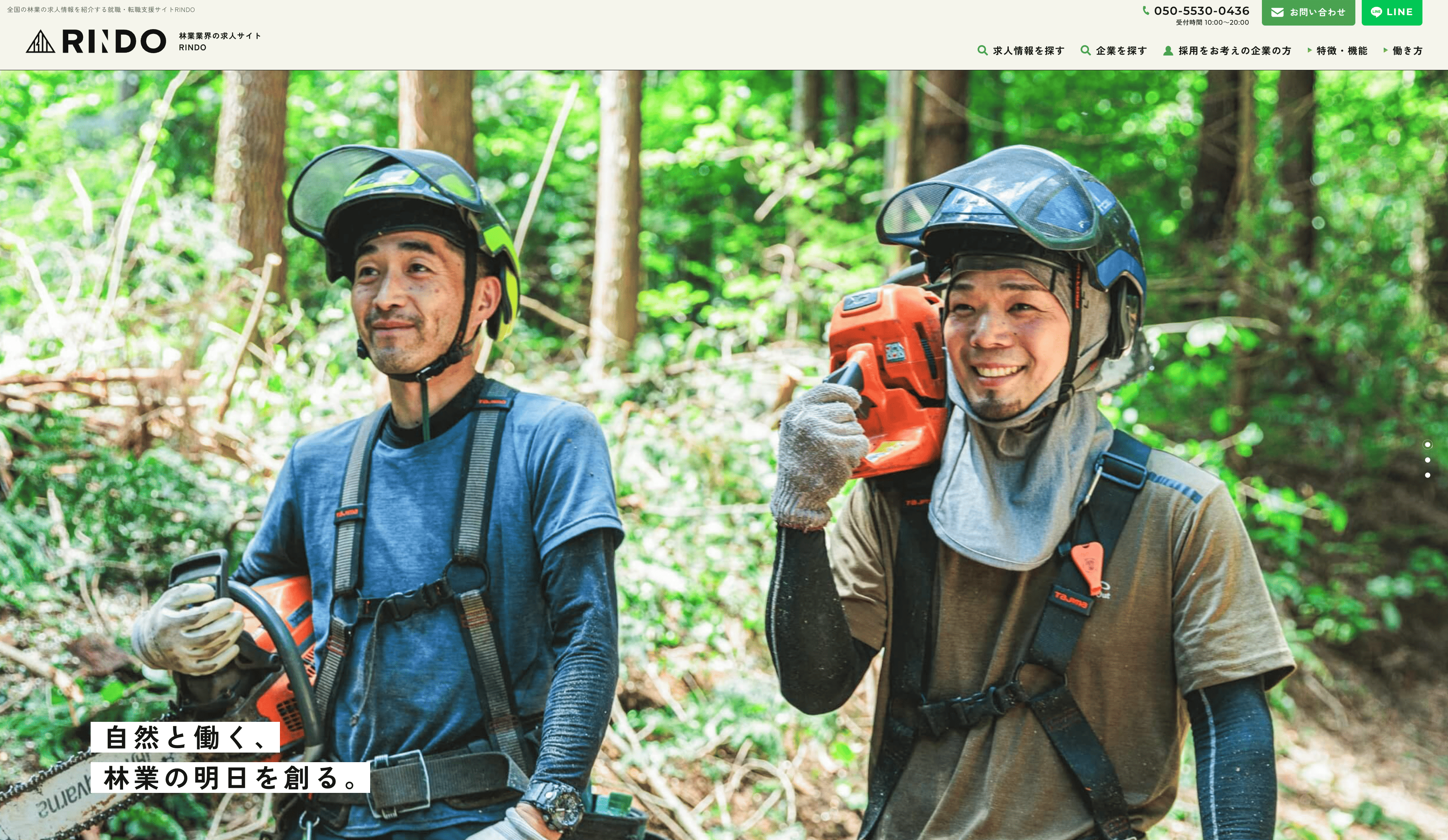 「RINDO」は、林業事業を営む企業・団体と、林業に従事したい求職者をつなぐことで業界の活性化を目指す民間企業では日本初の林業専門求人サイトです。2024年1月のサービス開始から、全国各地の林業の求人情報を紹介し就職・転職の支援をしています。